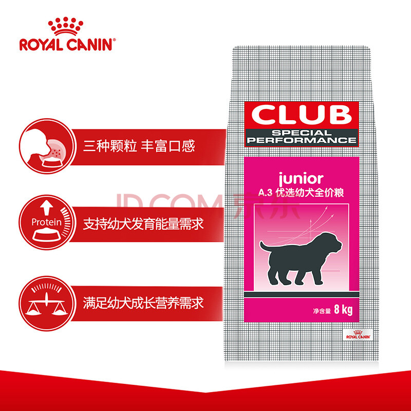 商品相册:皇家狗粮 幼犬狗粮 犬粮 通用犬型 A3 通用粮 2-12月 8KG第