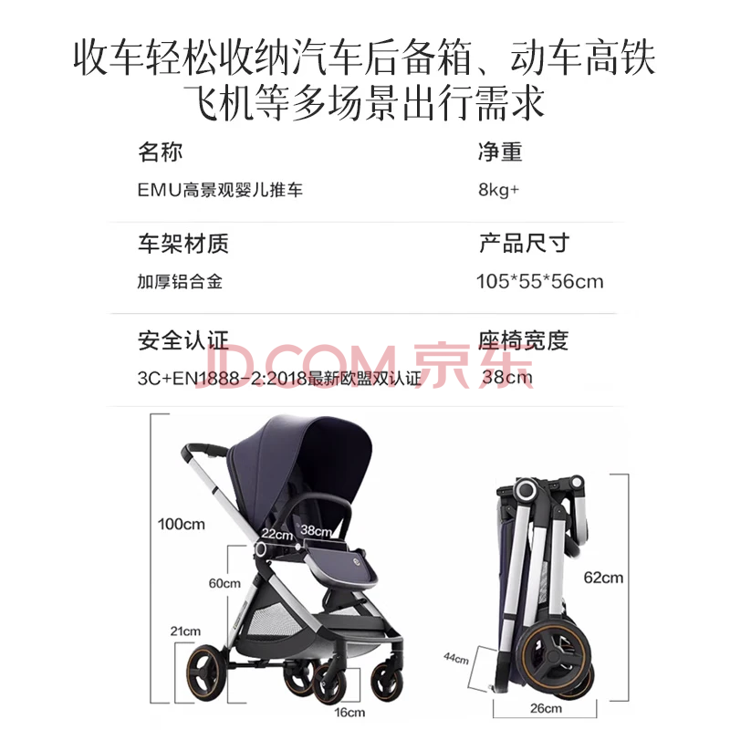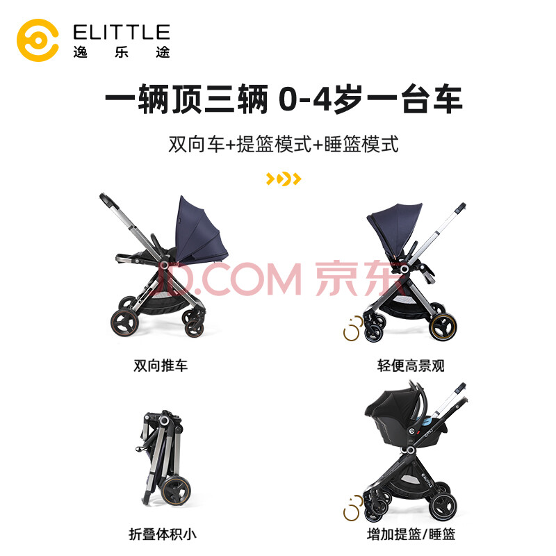 商品相册:elittle逸乐途婴儿推车高景观婴儿车双向折叠可坐可躺遛娃神器 EMU欧洲版俏丽粉第