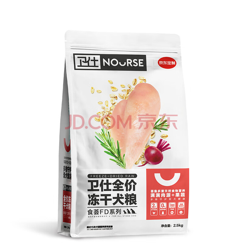 商品相册:卫仕(NOURSE)食荟双拼冻干犬粮 狗干粮 幼成犬通用全价狗粮 2.5kg第