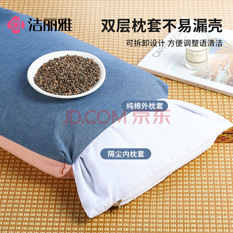 商品相册:洁丽雅(Grace)纯棉A类荞麦枕头100%荞麦壳荞麦皮枕芯颈椎枕单只第1张/共7