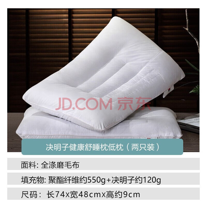商品相册:富安娜家纺低枕头芯 决明子草本成人颈椎枕套装健康舒睡一对装74*48cm白第