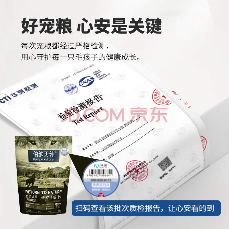 商品相册:伯纳天纯狗粮原始狩猎鸭肉&梨犬粮400g/包第