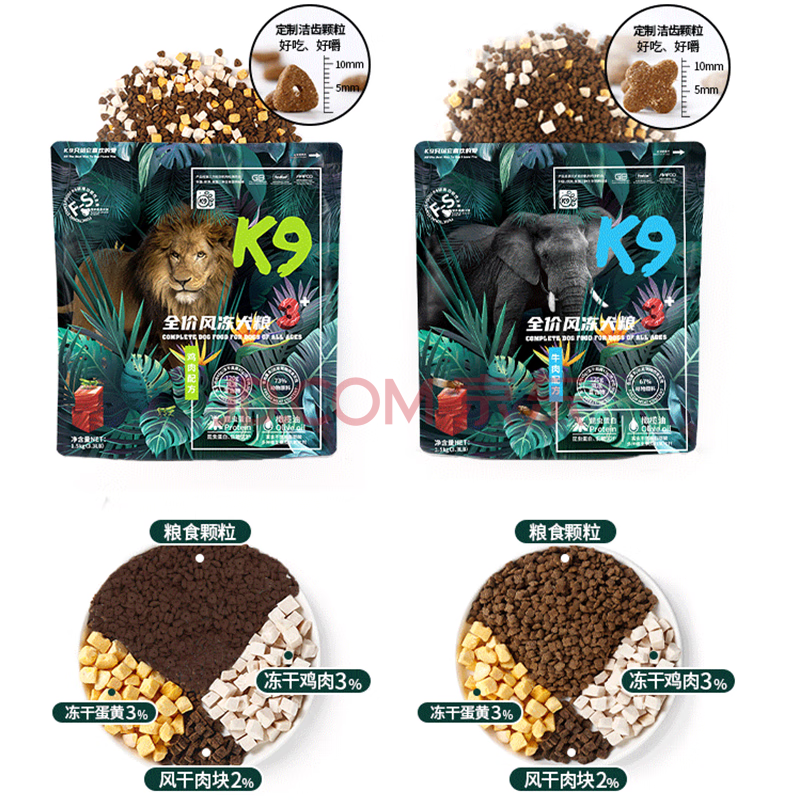 商品相册:K9狗粮风干冻干三拼昆虫蛋白小型犬中大型成幼犬通用1.5kg/3斤第
