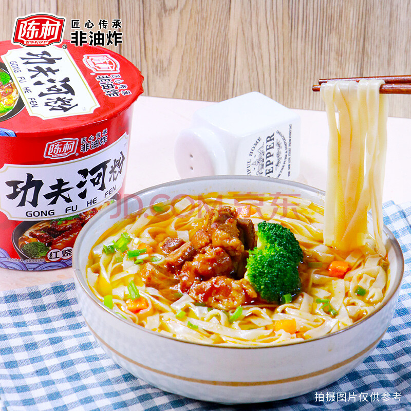 商品相册:陈村 功夫河粉 红烧排骨味 90g*12桶 广东扁薄滑宽粉粿条代餐夜宵速食第1张/共4