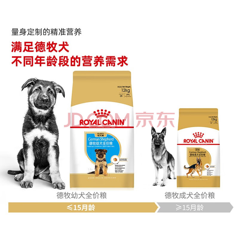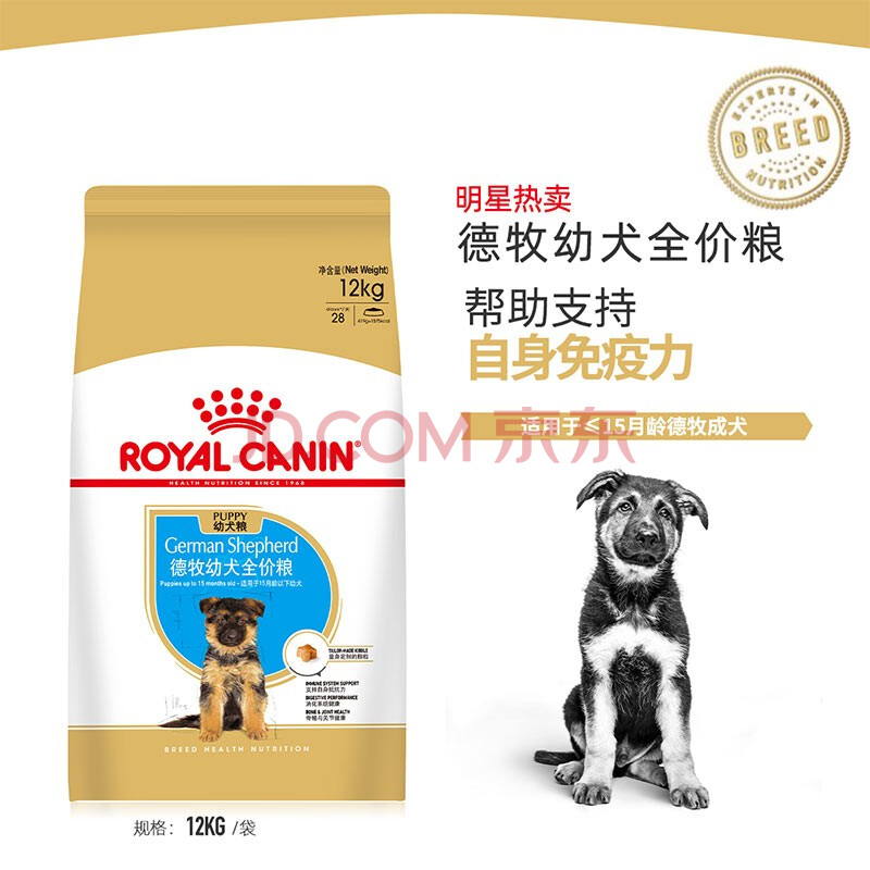 商品相册:皇家狗粮 德牧幼犬狗粮 犬粮 宠物大型犬 AGS30 全价犬粮 2-15月 12KG第