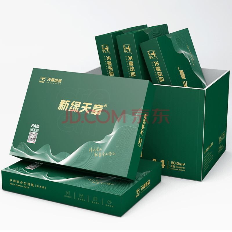 商品相册:天章 (TANGO)新绿商务A4打印纸 80g 500张*8包 双面打印复印纸 纸张洁白顺滑畅打 整箱4000张【合同标书款】第