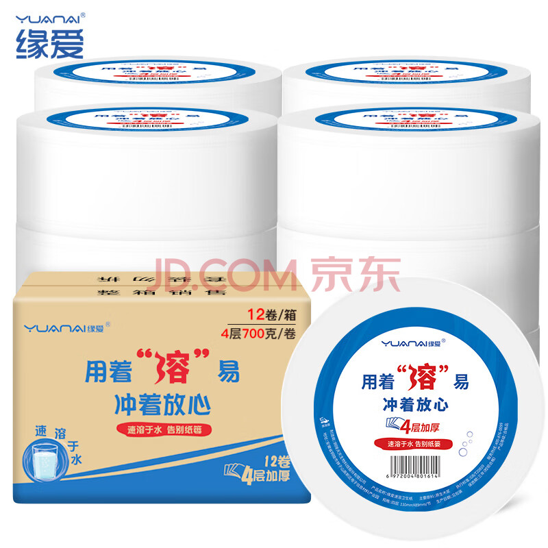 商品相册:缘爱大卷纸4层700克*12卷 大盘纸商场酒店卫生纸 加厚厕纸 整箱销售第