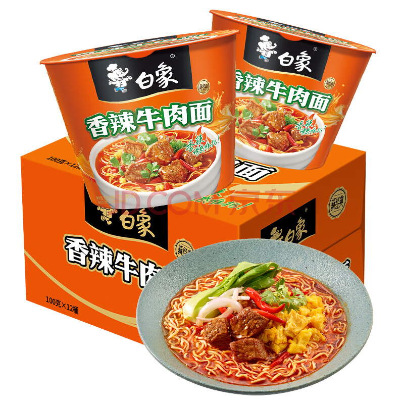 商品相册:白象 方便面 经典香辣牛肉100g*12桶泡面整箱装第