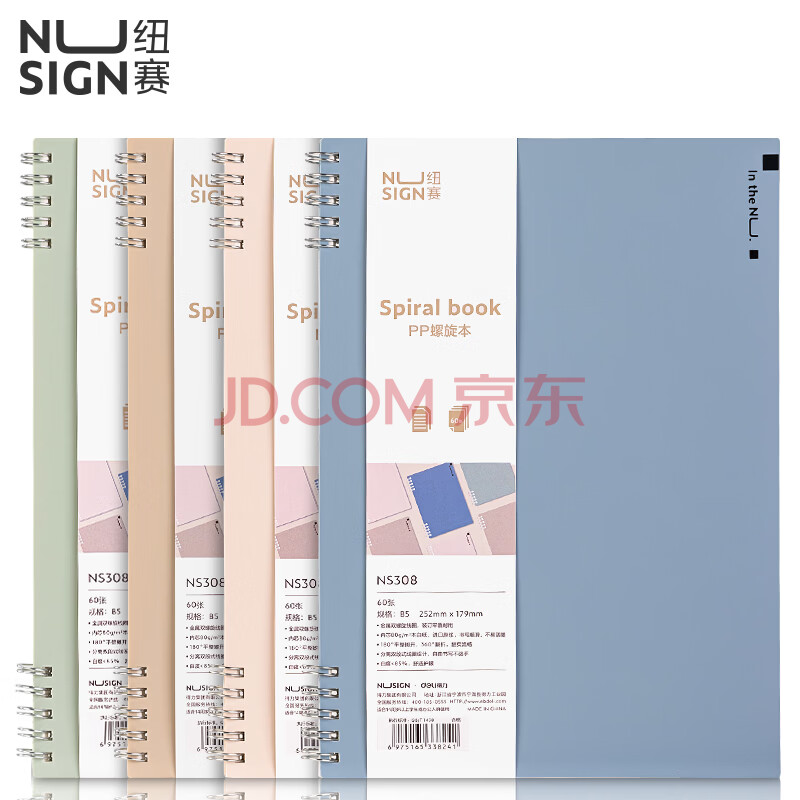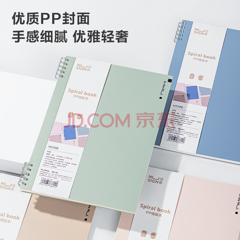 商品相册:纽赛(NUSIGN)PP封面不硌手螺旋本B5-60张 加粗双螺旋线圈本颜色随机NS308【热门商品】得力旗下高端品牌第