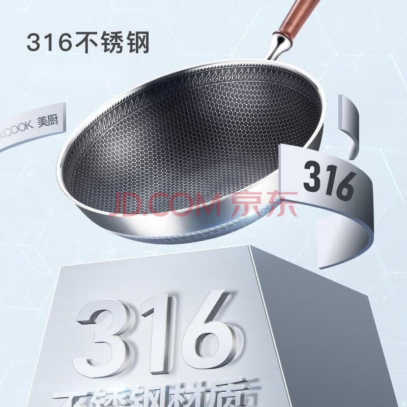 商品相册:美厨美厨旗舰版316不锈钢蜂窝炒锅MCC7867第