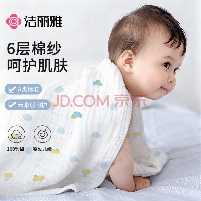 商品相册:洁丽雅(Grace)A类纯棉婴儿纱布浴巾男女宝宝洗澡巾新生儿用品大毛巾被110*110cm第