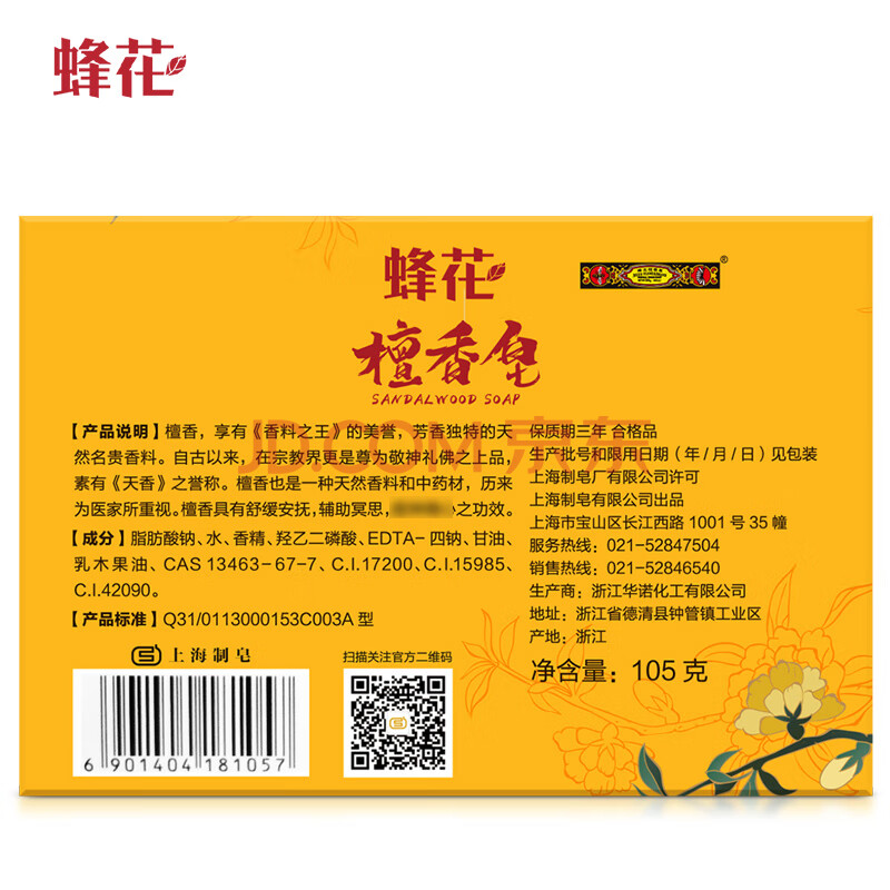 商品相册:蜂花檀香皂105g*3块洁面皂洗脸皂沐浴香氛香体皂不拔干肥皂男女士用第