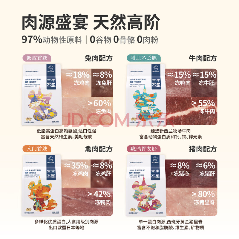 商品相册:生生不息主食冻干猫粮主食成猫幼猫全价生骨肉猫粮兔肉配方400g第