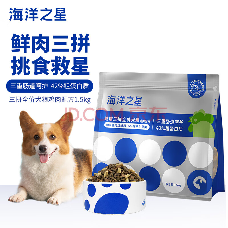商品相册:海洋之星冻干生骨肉三拼高鲜肉狗粮成犬幼犬狗干粮1.5kg (鸡肉配方)第