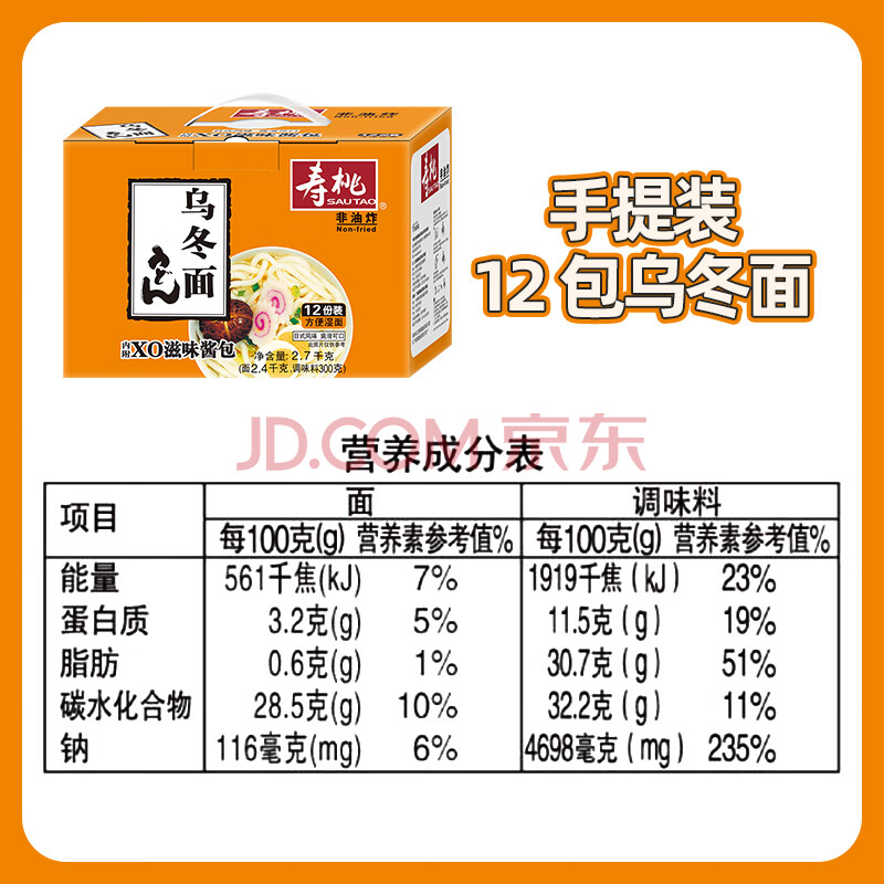 商品相册:寿桃日式乌冬面方便面泡面非油炸速食拌面粗面(12包装)配XO酱2700g第