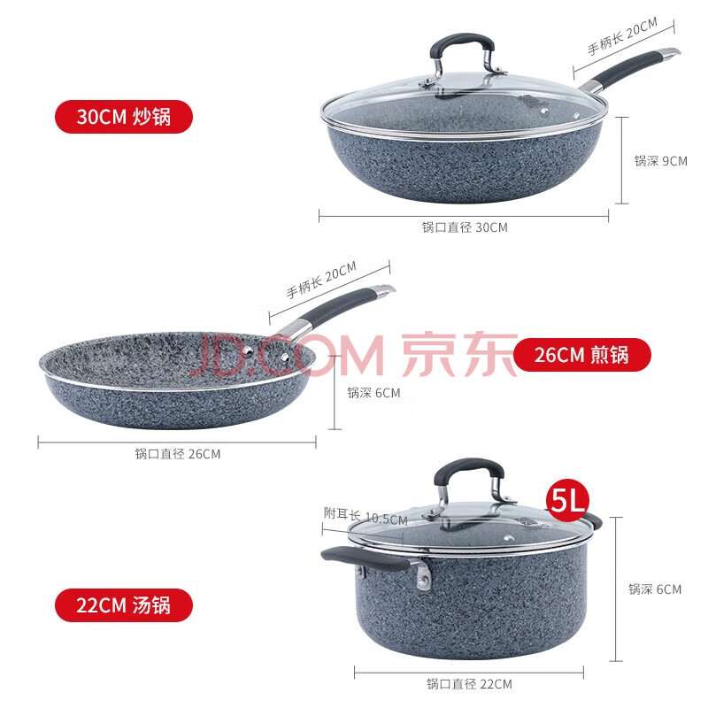 商品相册:三禾锅具(SANHO)麦饭石不粘锅炒锅三件套T608第