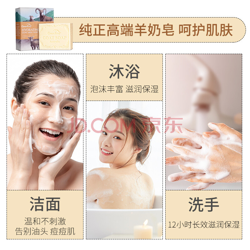 商品相册:绿色溪谷香皂洗脸皂洁面皂洗手洗发沐浴控油羊奶皂100g滋润保湿经典款第