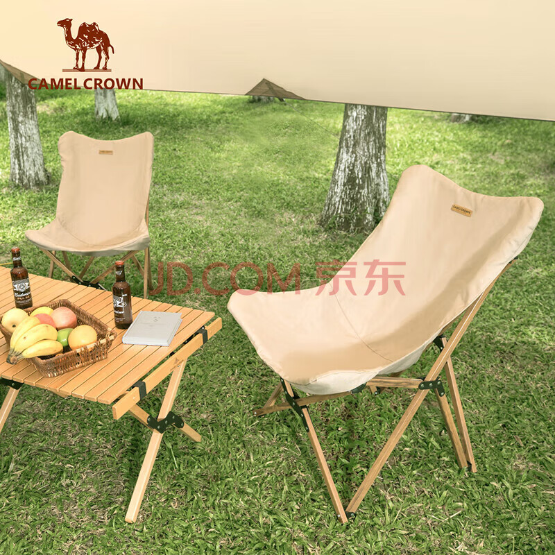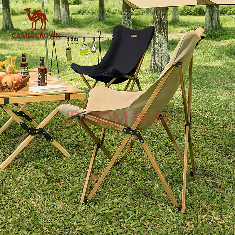 商品相册:CAMELCROWN户外折叠椅子结实便携超轻露营钓鱼导演月亮椅野餐 A1W3GT103黑色第