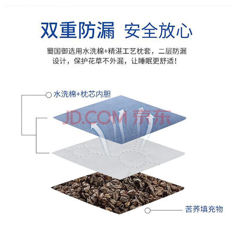 商品相册:蜀国御 儿童全荞麦枕头青少年学生睡眠低枕6-15岁枕头舒适睡眠.慕简蓝色第