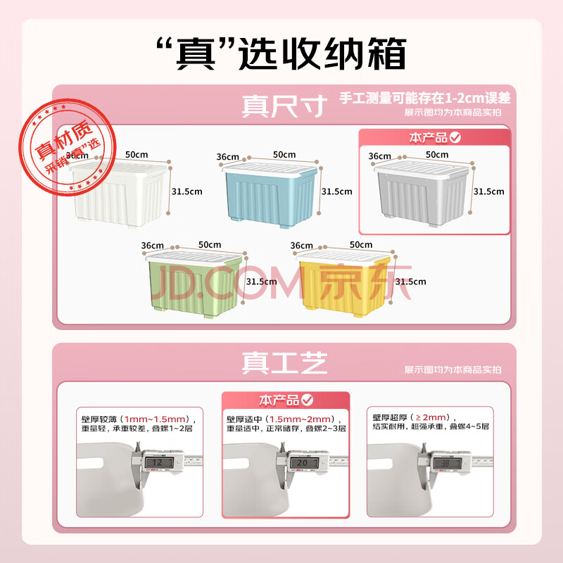 商品相册:SPACEXPERT 衣物收纳箱特大号塑料整理箱车载储物箱36L灰色 1个装 带轮第