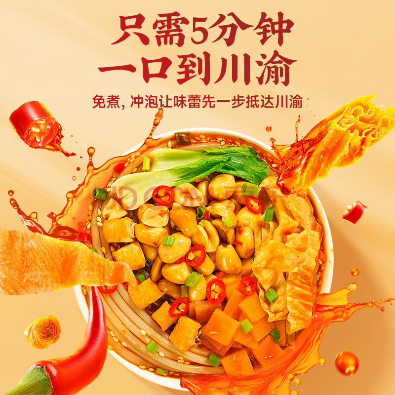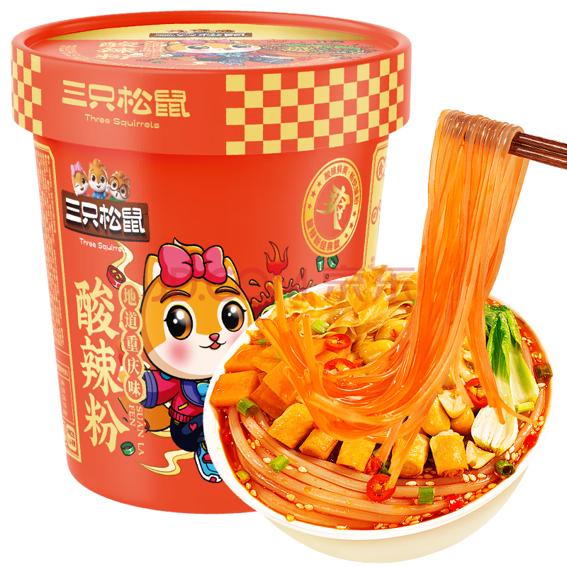 商品相册:三只松鼠重庆酸辣粉130g*5桶 非油炸粉丝方便速食冲泡重庆风味地方特产第