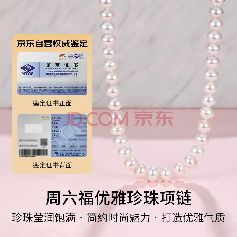 商品相册:周六福S925银扣淡水珍珠项链妈妈生日礼物 扁圆7.5-8.5mm 45cm第