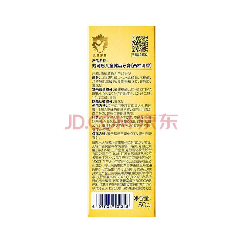 商品相册:戴·可·思儿童牙膏防蛀含氟儿童牙膏3-6-12岁预防龋齿宝宝牙膏西柚味50g第
