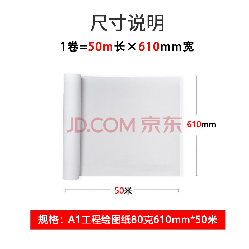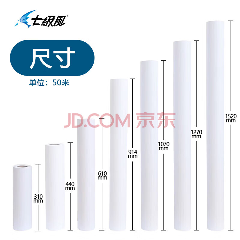 商品相册:七级风A1绘图纸工程设计白纸打印绘画80克610mm*50米 2英寸卷芯 长适用国产喷绘写真机/惠普/佳能/爱普生第