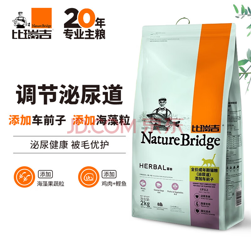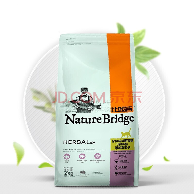 商品相册:比瑞吉猫粮草本系列全价 泌尿道健康功能粮添加车前子 成猫粮2kg第