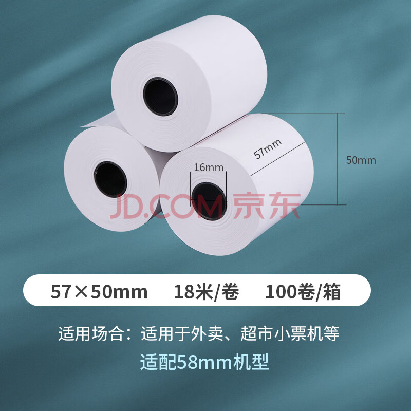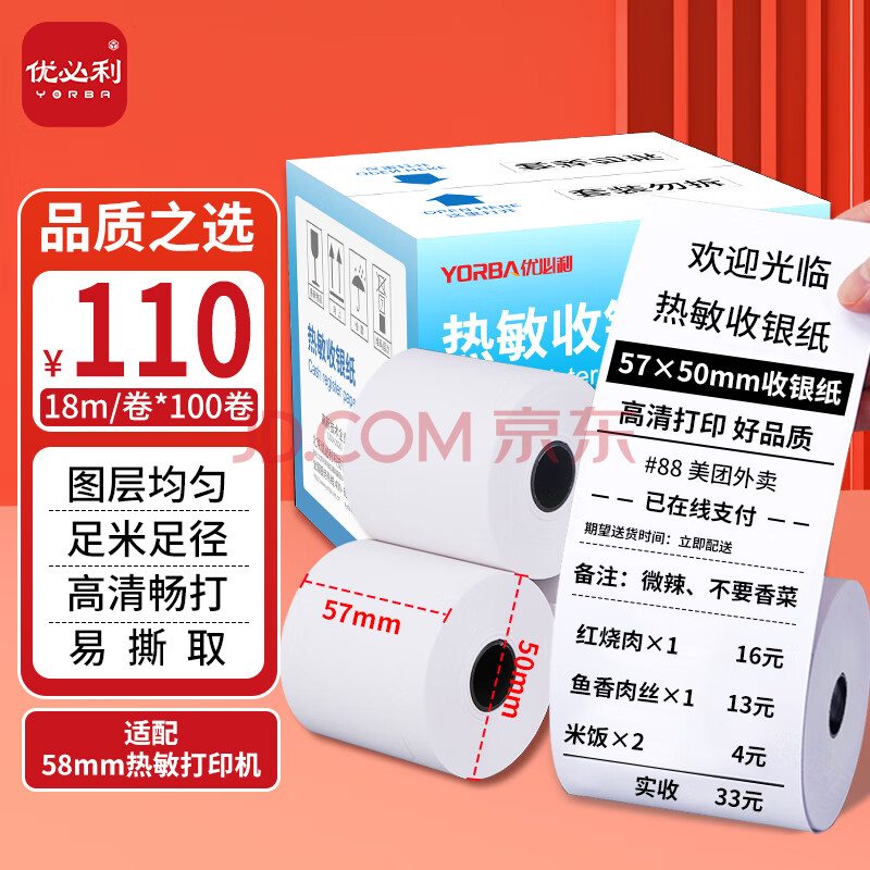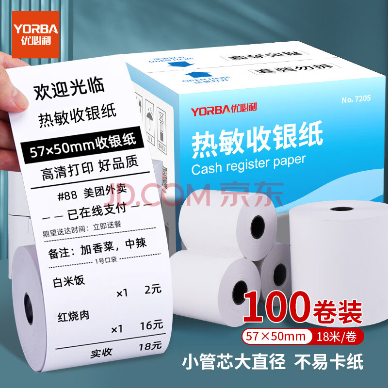 商品相册:优必利 收银纸热敏纸收银打印纸 超市小票美团外卖打印纸 57*50mm/100卷 7205第