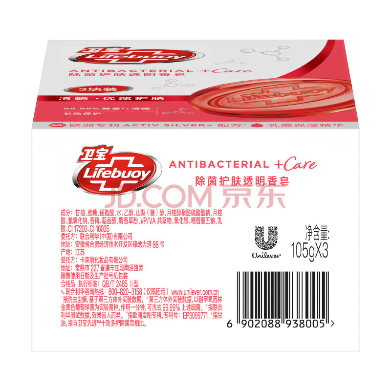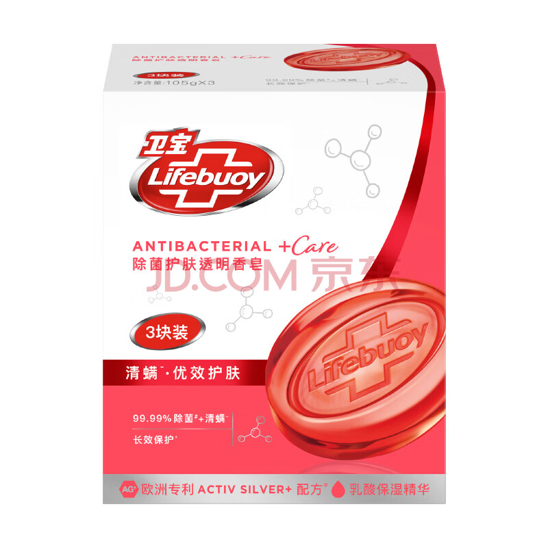 商品相册:lifebuoy卫宝清螨护肤除菌透明香皂3块装 105G×3第