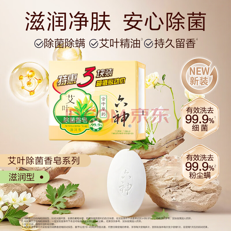 商品相册:六神【超值9块装】艾叶115g*3+百合108g*3+绿茶108g*3 香皂 肥皂第