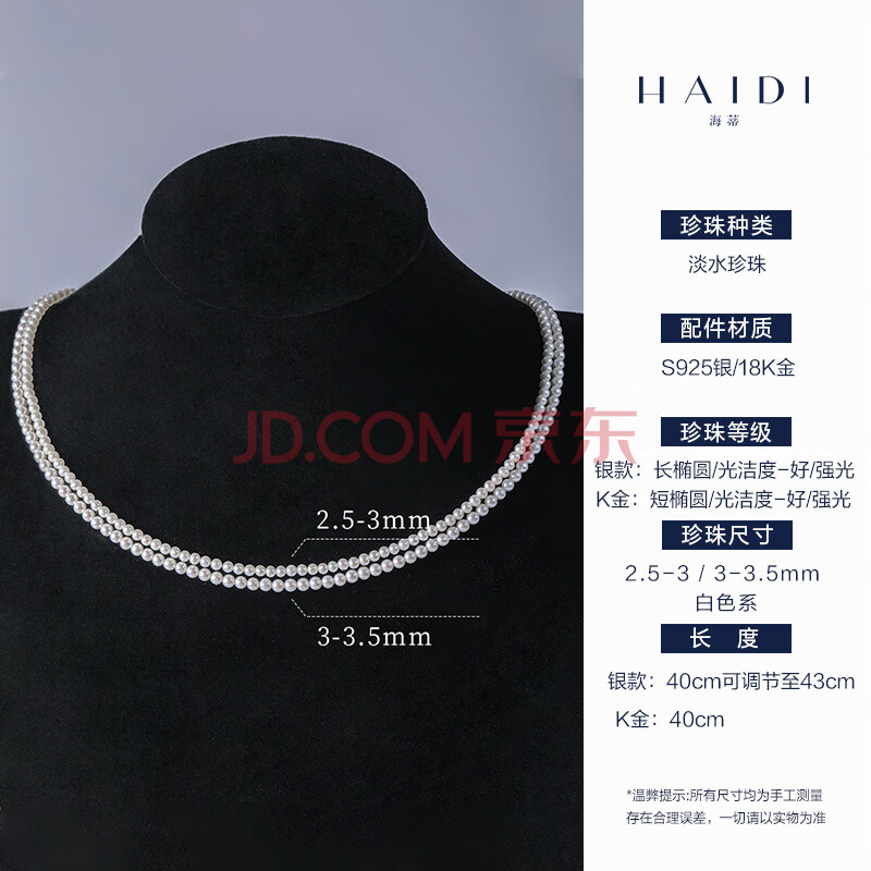 商品相册:海蒂18K金2.5-3mm无核小米珠淡水珍珠项链女叠戴精选品质送女友礼物第