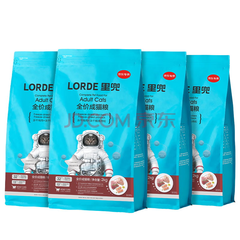 商品相册:lorde里兜成猫冻干猫粮全价主食益生菌肠道呵护无谷猫粮专供款2kgx4袋 第