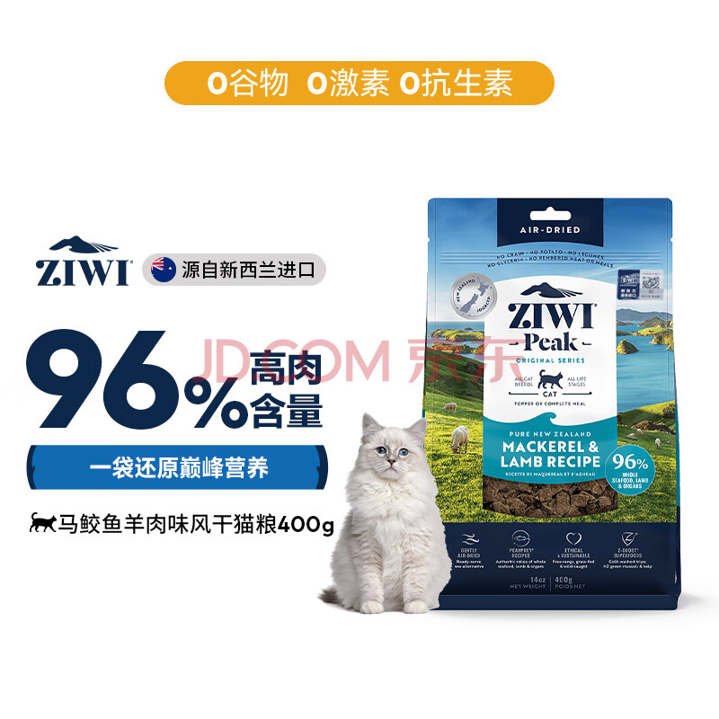 商品相册:滋益巅峰(ZIWI)无谷风干马鲛鱼羊肉味猫粮400g成猫幼猫通用新西兰原装进口第