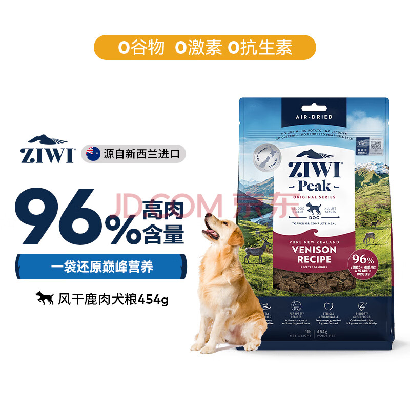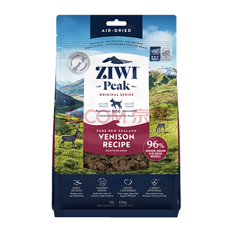 商品相册:滋益巅峰(ZIWI)无谷风干狗粮454g鹿肉味主粮干粮犬粮成犬幼犬通用第