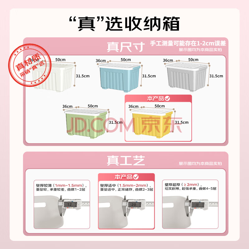 商品相册:SPACEXPERT 衣物收纳箱特大号塑料整理箱车载储物箱36L黄色 1个装 带轮第