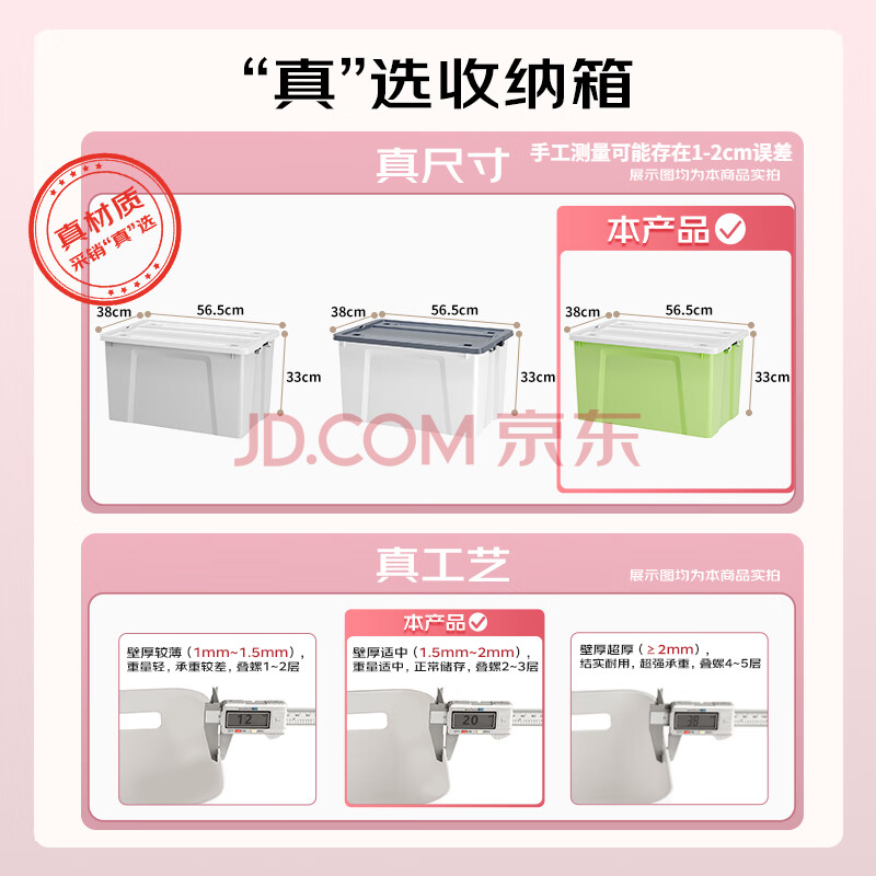商品相册:清野の木 衣物收纳箱特大号塑料整理箱56L绿色 1个装 带轮第