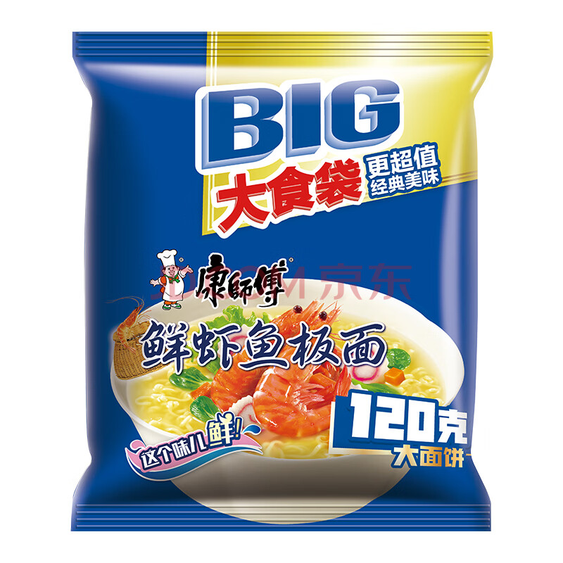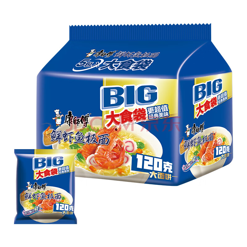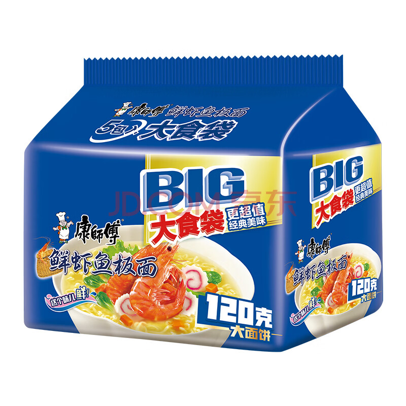 商品相册:康师傅 方便面 大食袋鲜虾鱼板面五连包139g*5 泡面袋装速食 方便食品第