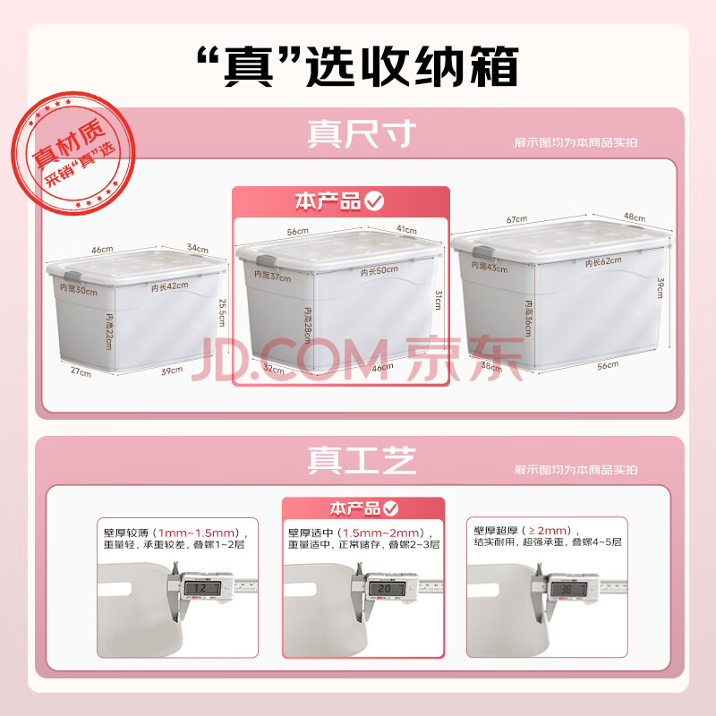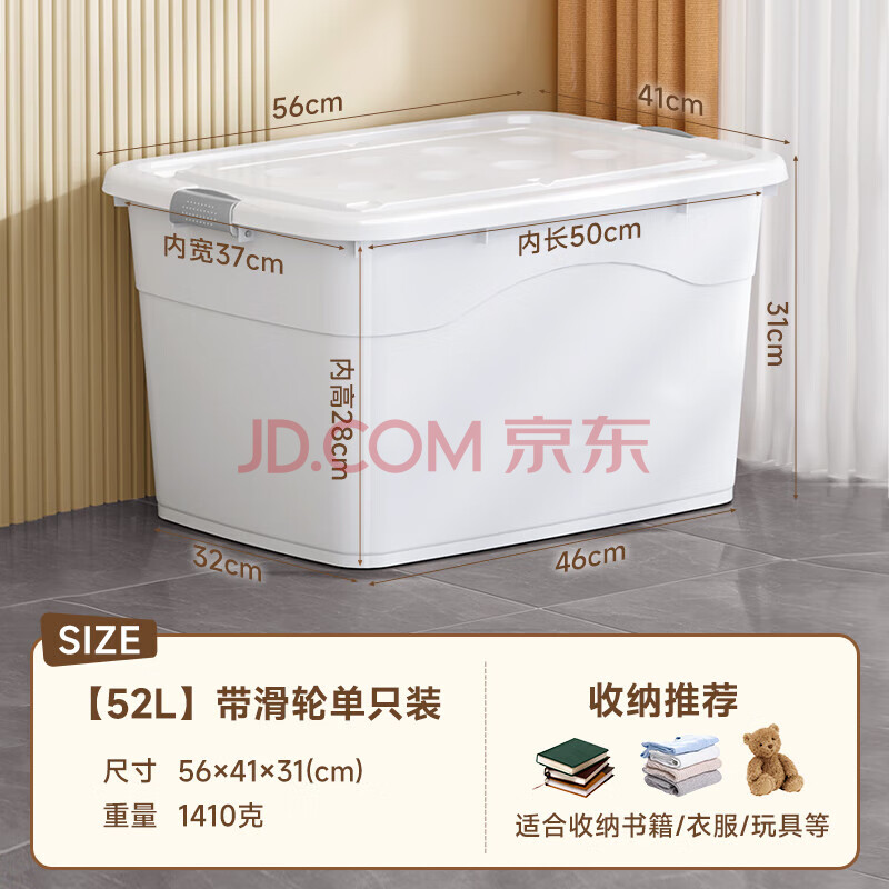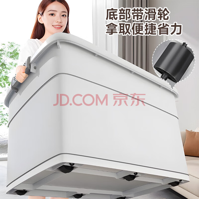 商品相册:百草园塑料衣物收纳箱玩具储物箱52L瓷白1个装带轮第