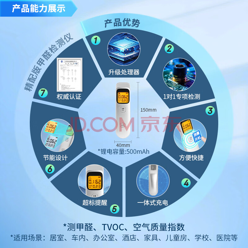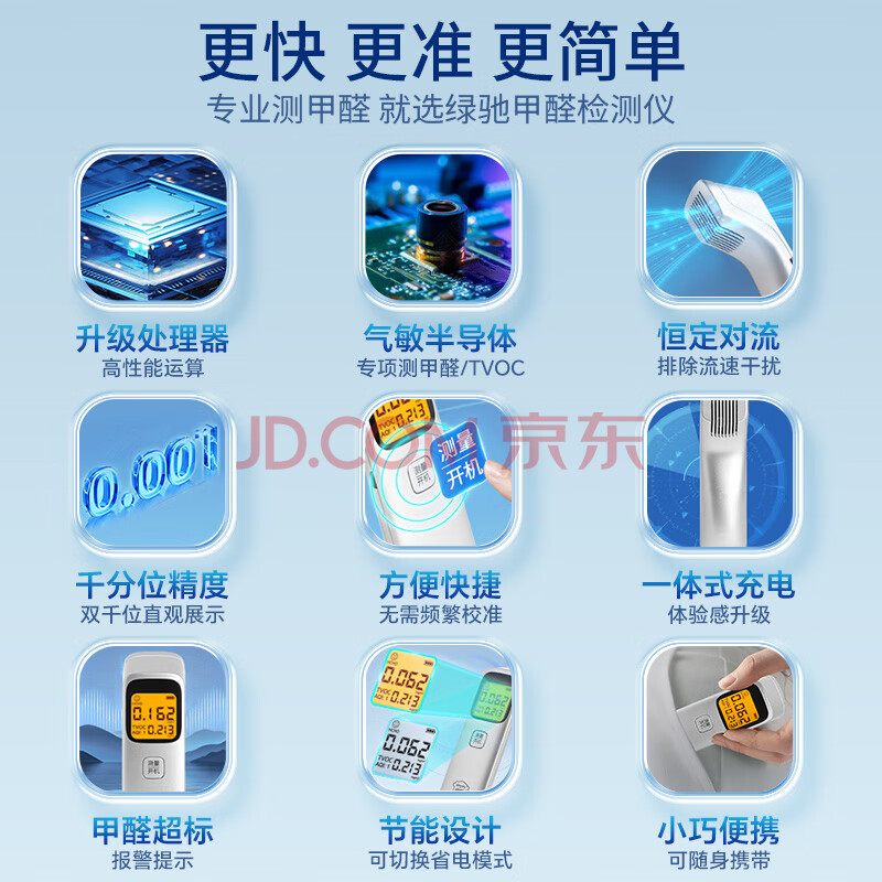 商品相册:绿驰专业测甲醛检测仪器家用 便携TVOC空气质量检测仪cma甲醛测试盒纸第