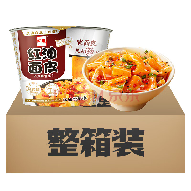 商品相册:阿宽红油面皮方便拌面酸辣凉皮110g*12桶 非油炸泡面整箱装夜宵家庭装第