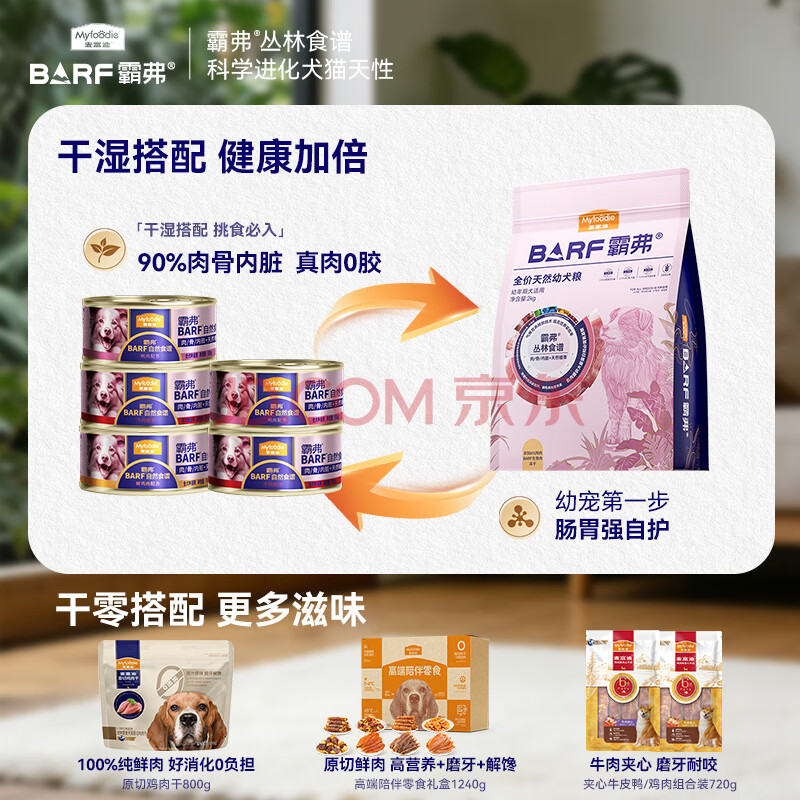 商品相册:麦富迪狗粮 barf霸弗天然狗粮奶糕幼犬粮冻干粮小型犬粮养护肠胃鸡肉2kg第
