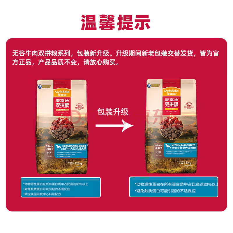 商品相册:麦富迪狗粮 无谷牛肉双拼狗粮成犬中大型犬专用强健骨骼15kg/30斤第