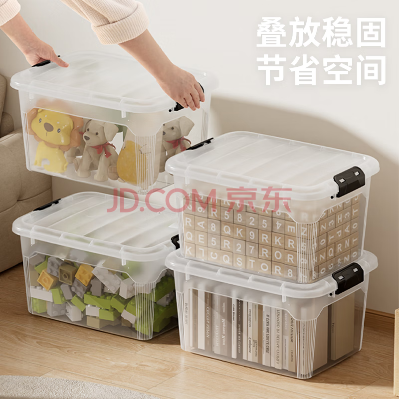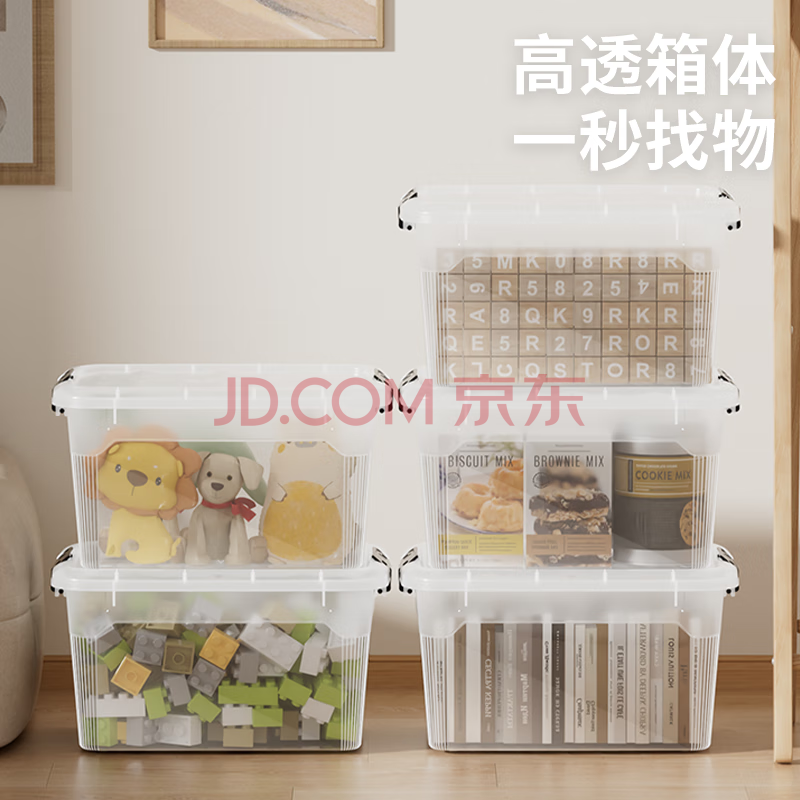 商品相册:禧天龙塑料衣物收纳箱玩具整理箱30L 透明 3个装 不带轮第