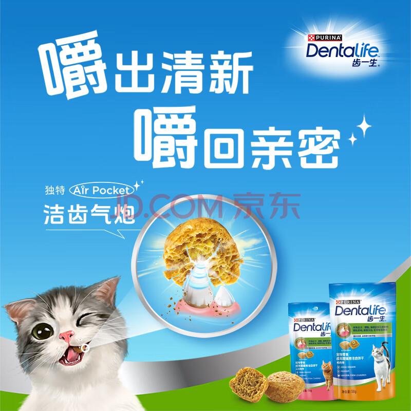 商品相册:齿一生猫零食猫咪饼干洁齿磨牙零食成猫 三文鱼味50g第