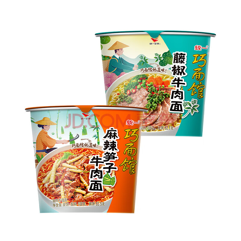 商品相册:统一巧面馆辣的巴适组合麻辣笋子6+藤椒牛肉6整箱装新老包装随机发货第