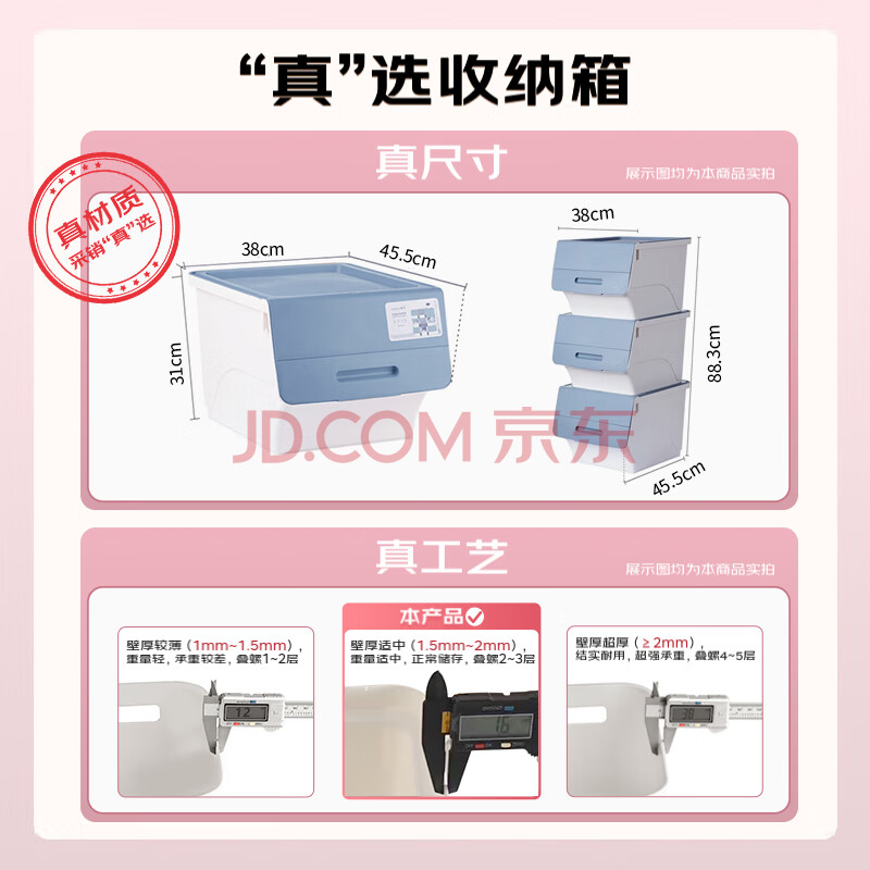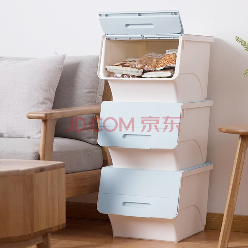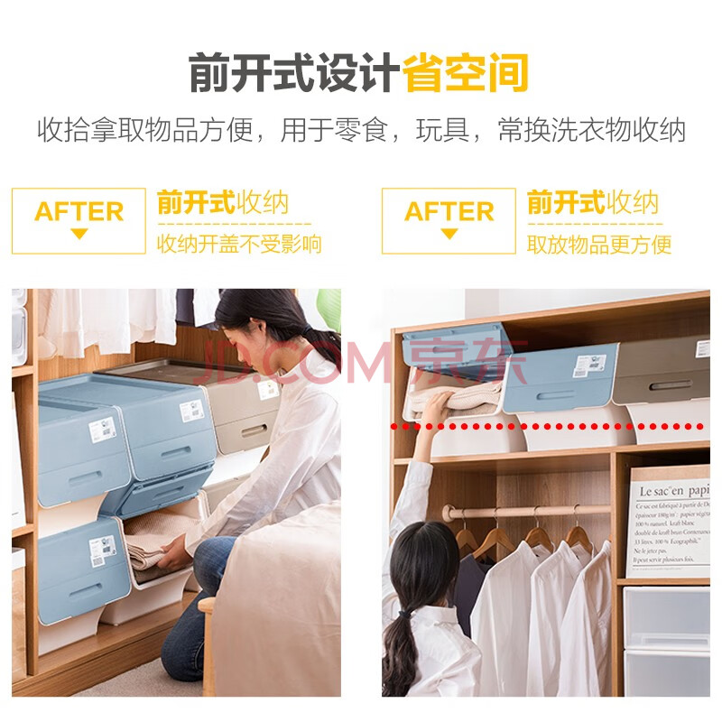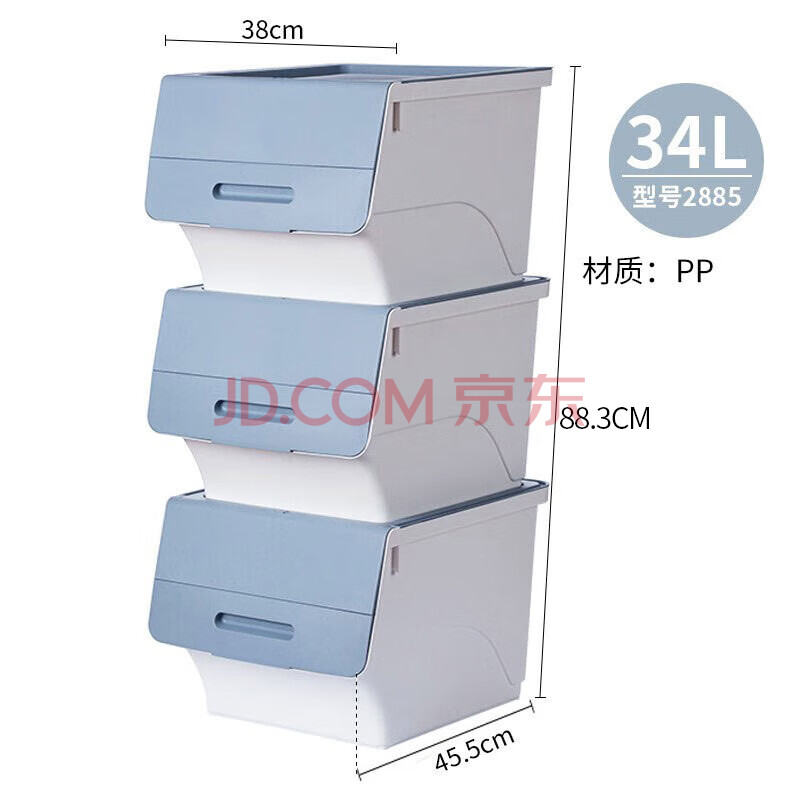 商品相册:茶花塑料衣物收纳箱棉被整理箱34L 蓝灰色 3个装第