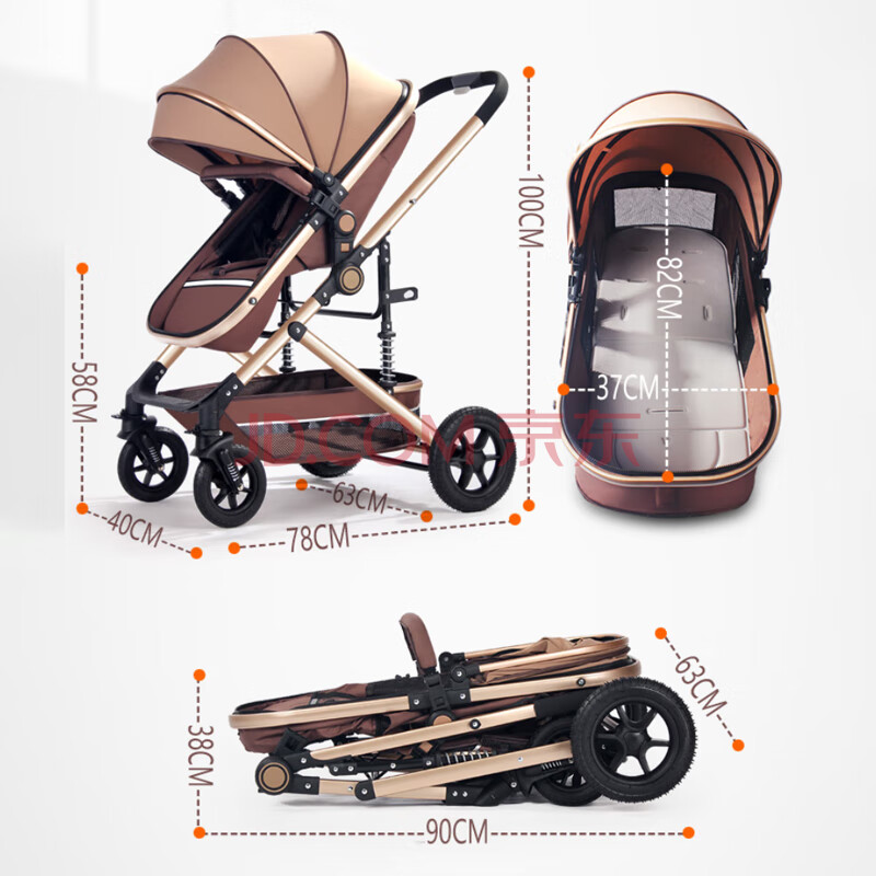 商品相册:ANGI BABY婴儿推车可坐可躺可折叠婴儿车高景观双向减震手推车第