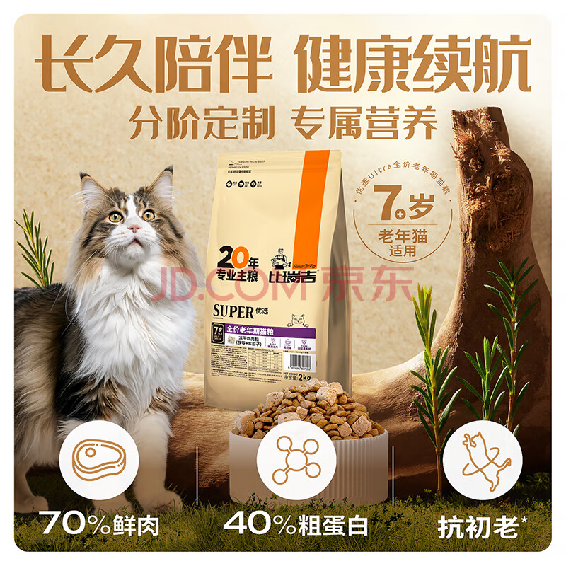 商品相册:比瑞吉优选系列茶多酚维E蓝莓蔓越莓还原活力原切鸡肉冻干2kg老年猫猫粮第